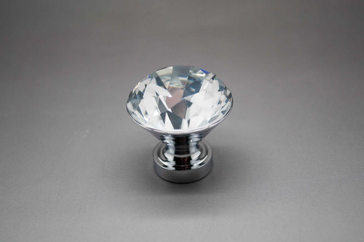 Handtag / Knopp, Kristall “Silver” – 30 mm, med metallkrage