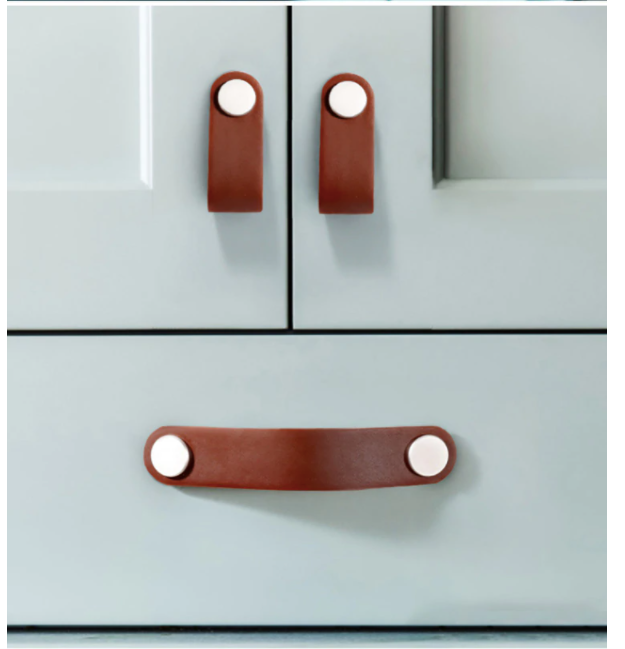 Högkvalitativa läderhandtag med metallfästen som fulländar designen. Med detta handtag får du en hemtrevlig “Cohiba”-effekt i din inredning.