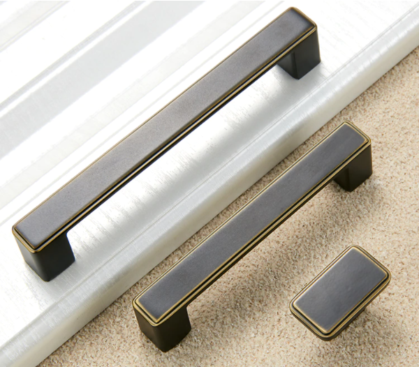 Handtagets matt-svarta finish framhävs av eleganta mässingseffekter, som lyfter fram den vackra designen.