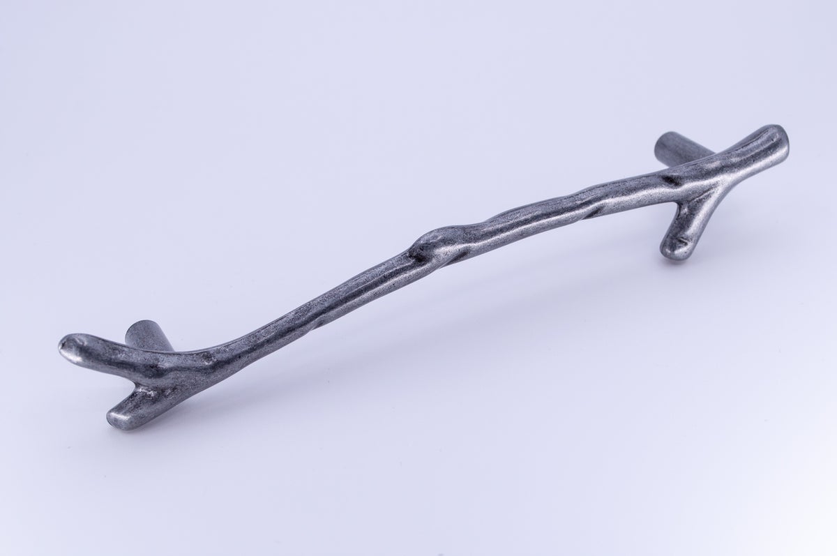 Ett vackert bearbetat metallhandtag som förmedlar känslan av Lapplands porlande bäckar och den äkta rustika karaktären hos fjällbjörkarna.