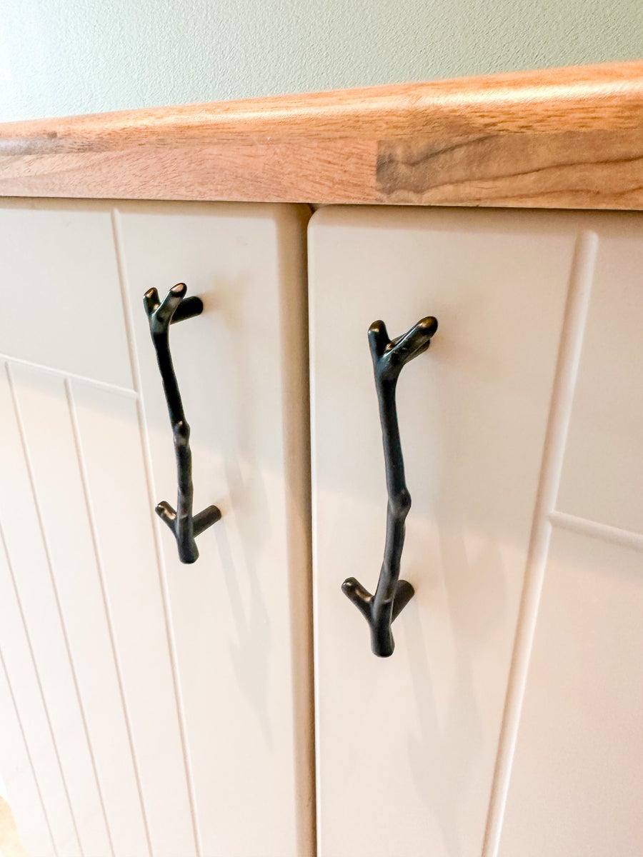 Ett vackert bearbetat metallhandtag som förmedlar känslan av Lapplands porlande bäckar och den äkta rustika karaktären hos fjällbjörkarna.